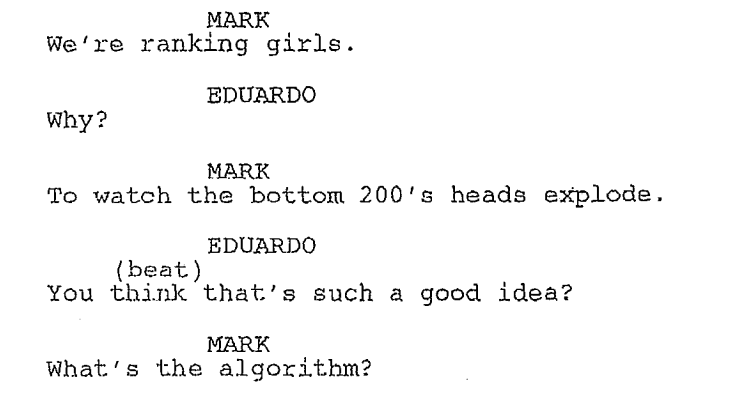 Eduardo, worried, asks Mark: "You think that's such a good idea?".