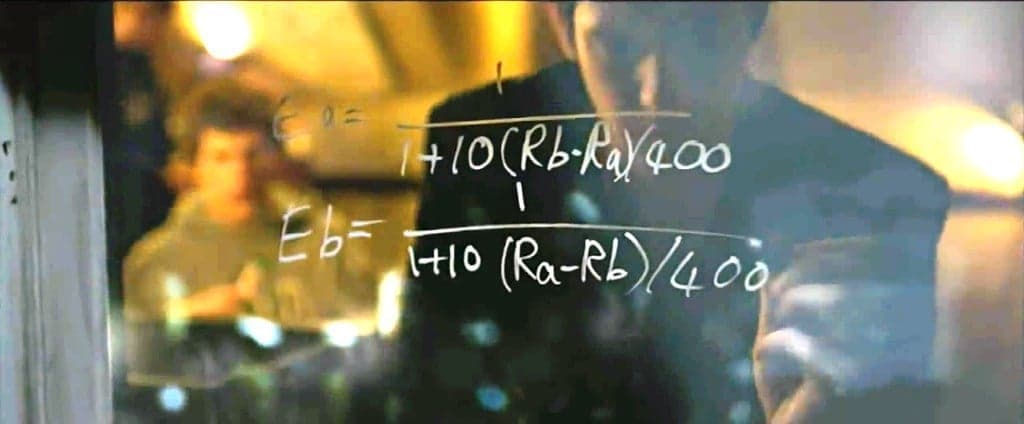 In the opening act of The Social Network, Eduardo Saverin stands at a dorm room window, marker in hand, scrawling a mathematical formula across the glass. The Elo rating system, originally designed for chess, would become the engine behind Facemash, Mark Zuckerberg's proto-Facebook experiment in rating the "hotness" of female Harvard students.