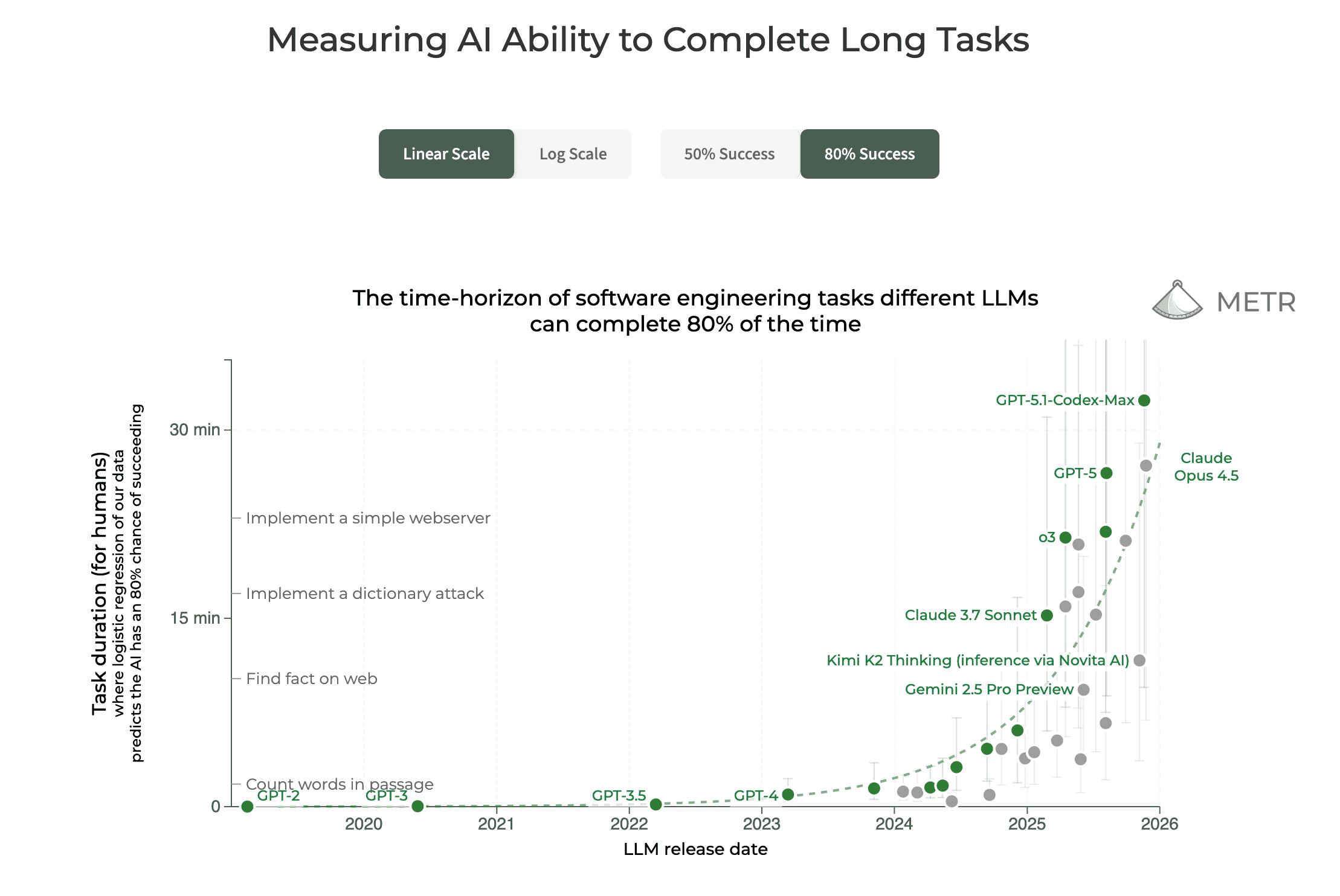 This isn't just a robotics problem, it's an open challenge in LLMs too. 2025 has shown fantastic progress in long task coherence, with the latest models able to run autonomously for ~30 mins. This is still a short horizon: language models still struggle with tasks requiring sustained coherence over hundreds of steps. Continual learning and long-horizon reliability will be major metrics of improvement across embodied and non-embodied AI in 2026.