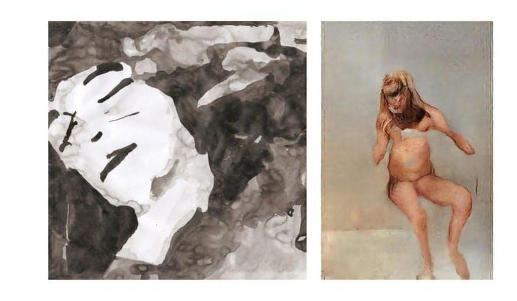 A gauche: 'The Fall of the House of Usher' par Anna Ridler. A droite: 'The Butcher's Son' par Mario Klingemann.